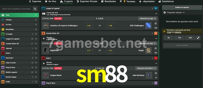O sm88 oferece uma grande seleção de opções de apostas em e-sports com probabilidades competitivas